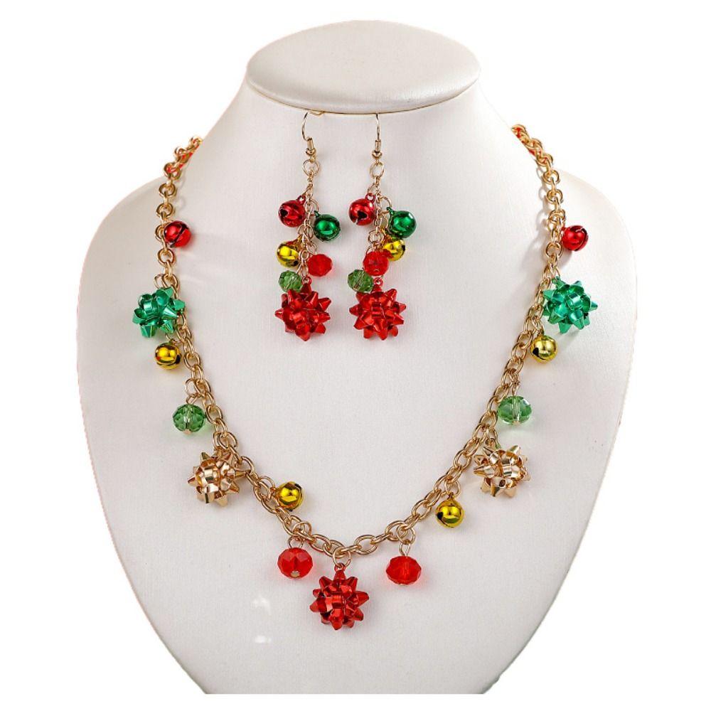 Серьги Рождественский Колокольчик Набор Украшений Ожерелье Рождество Цепочка на Ключицу Милый Фестиваль
