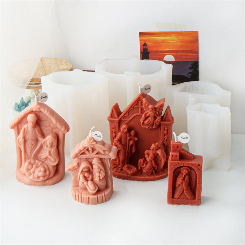 3D Иисус Семья Смола Силиконовая Форма Сделай Сам Дева Мария Арома Гипс Свеча Изготовление Креативная Форма для Моделирования Дома Семьи Иисуса