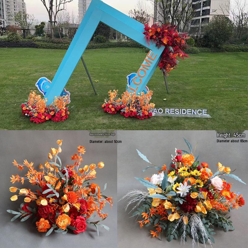 Autumnal Orange Silk Flower Pots for Wedding Aisle Décor