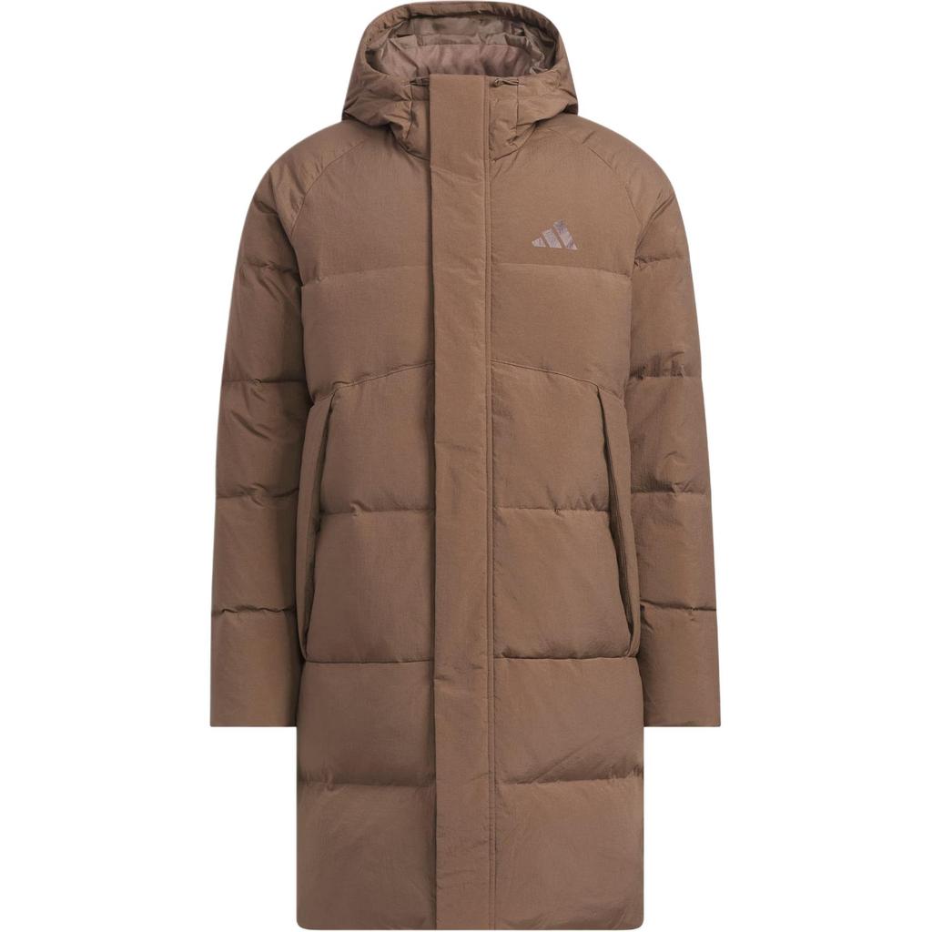 Adidas Мужской пуховик средней длины с капюшоном, на утином пуху 600 Fill, повседневный, с надписью, с длинным рукавом, KQ5517
