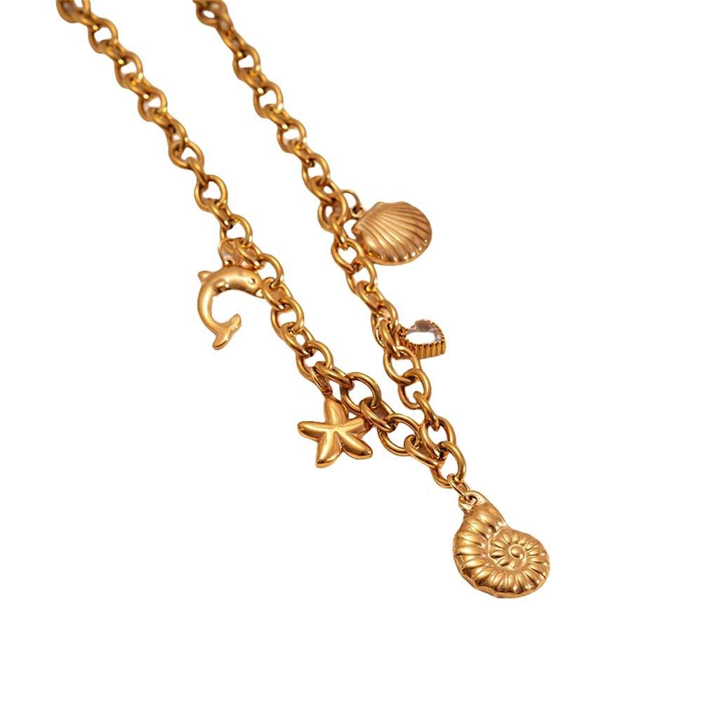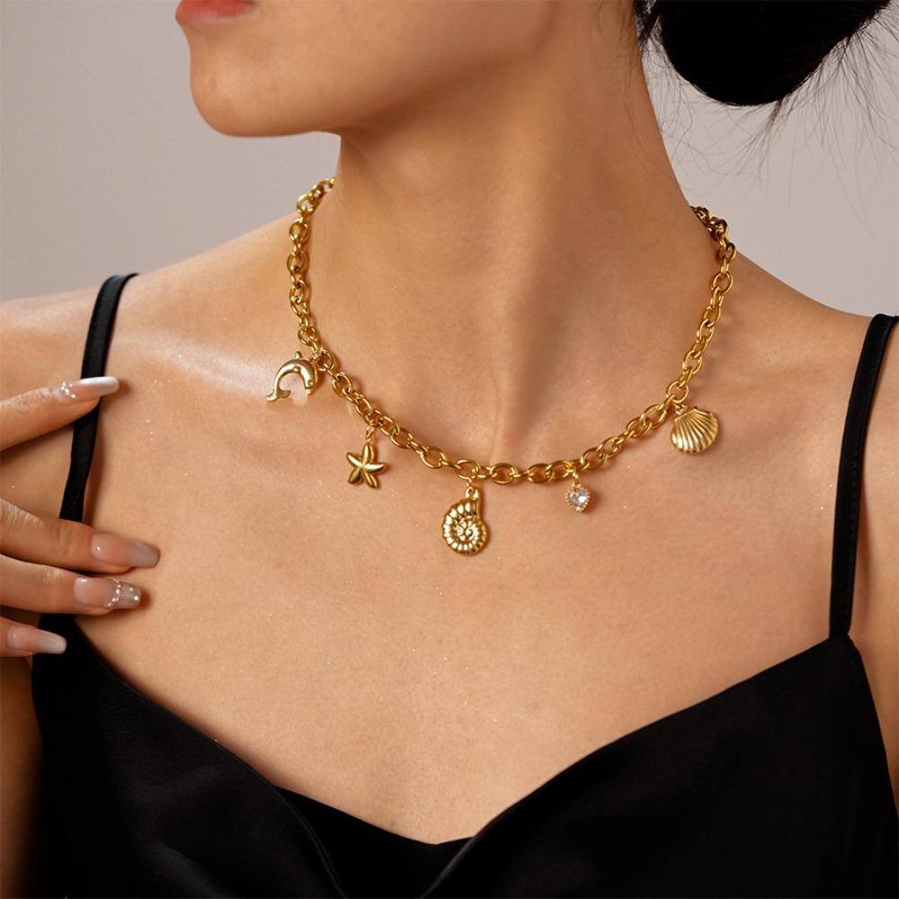 Turquoise Shell Starfish Necklace Titanium Steel Starfish Beach Earrings Women Daily