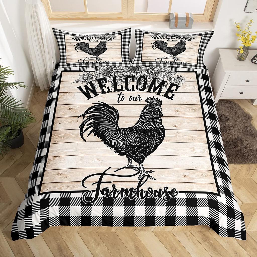 Комплект пододеяльника для фермерского дома с курицами, подсолнухами, животными, современный подарок для комнаты, ретро-доска, черно-белая клетка, пододеяльник