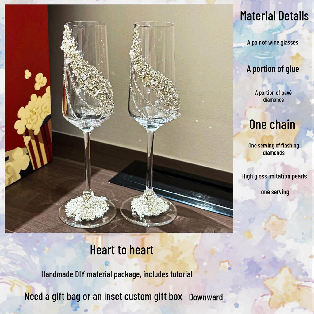 Сделай сам Бокалы для свадебного тоста на высокой ножке с крошкой бриллиантов - Ручная работа Подарок для невесты и свадьбы
