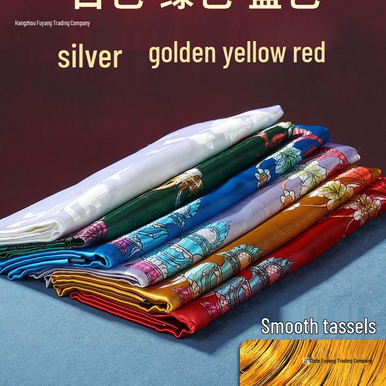 Тибетское украшение Ритуальный шарф с восемью благоприятными символами - Утолщенный пятицветный искусственный шелк