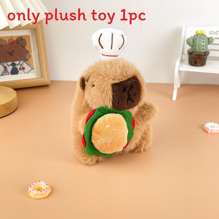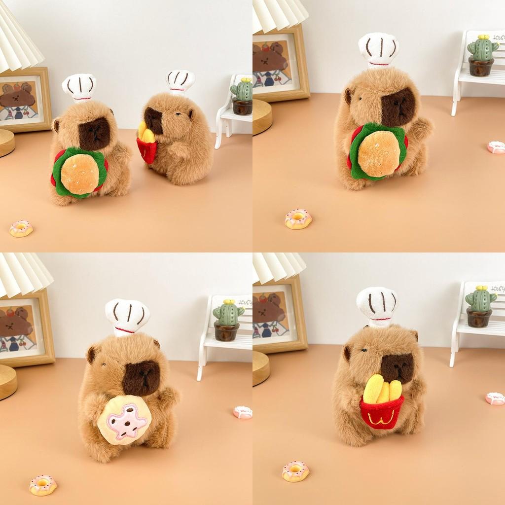 Introducing the delightful Capybara Plush Keychain, a charming addition to any collection. Crafted from durable short plush material and filled with soft PP cotton, this adorable accessory stands approximately 14 cm tall. Available in three fun designschef capybara with a hamburger, fries, or cookiethis keychain not only adds a whimsical touch but also offers a playful element to everyday items.