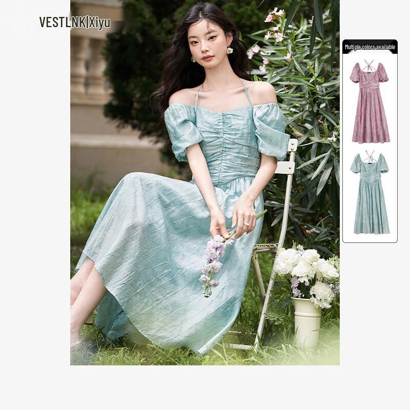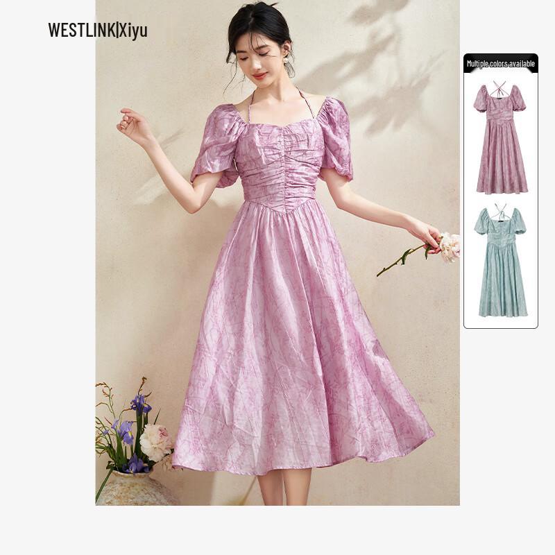 French Romantic Pleated Waist-Cinching Maxi Dress