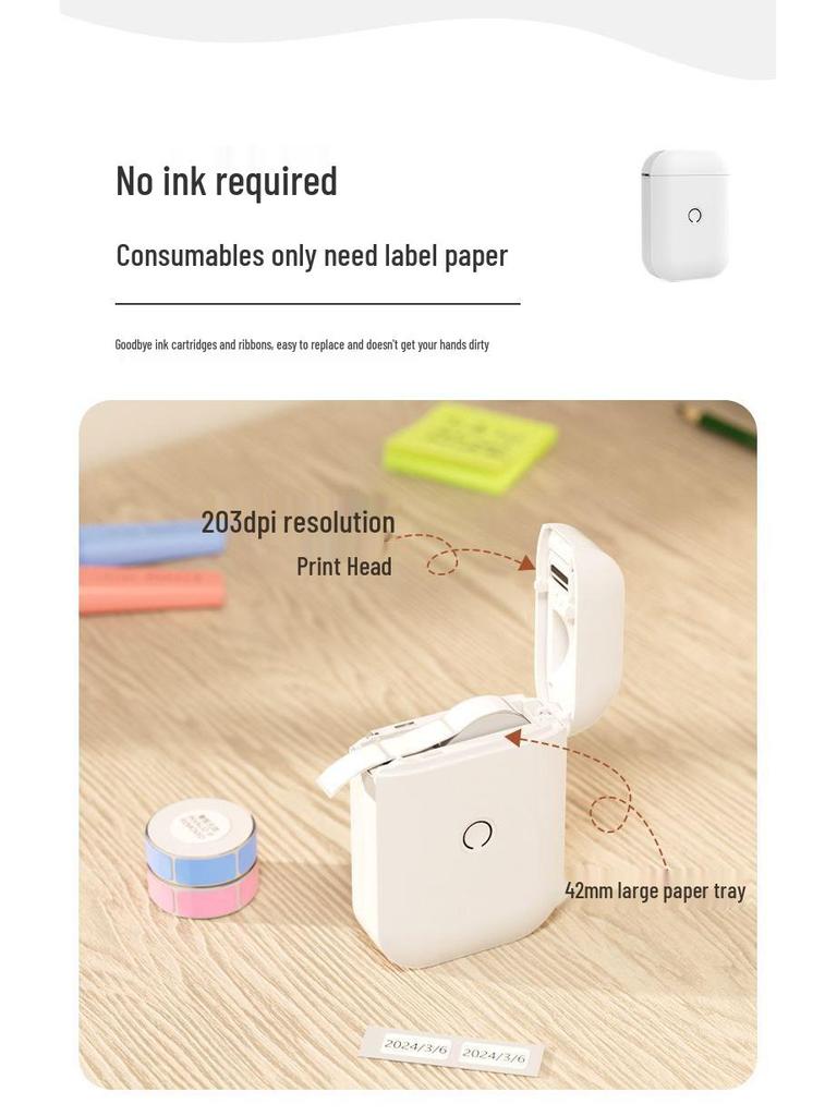 Портативный мини Bluetooth термопринтер для этикеток для домашнего использования с липкими заметками