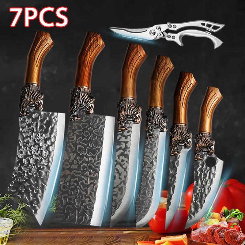 7Pcs Professional Kitchen Chef Knife Set Handmade Forged Cutting Knife Boning Duck Fish Scissors Stainless Steel Chef Knife