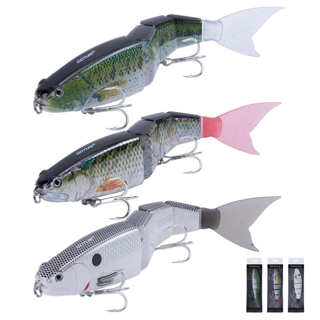 Goture Jointed 3 Interchangeable Soft Slow Lifelike Triple Hook for Sea River Bass Black and Suitable for and Saltwater and Freshwater Fishing Lure,