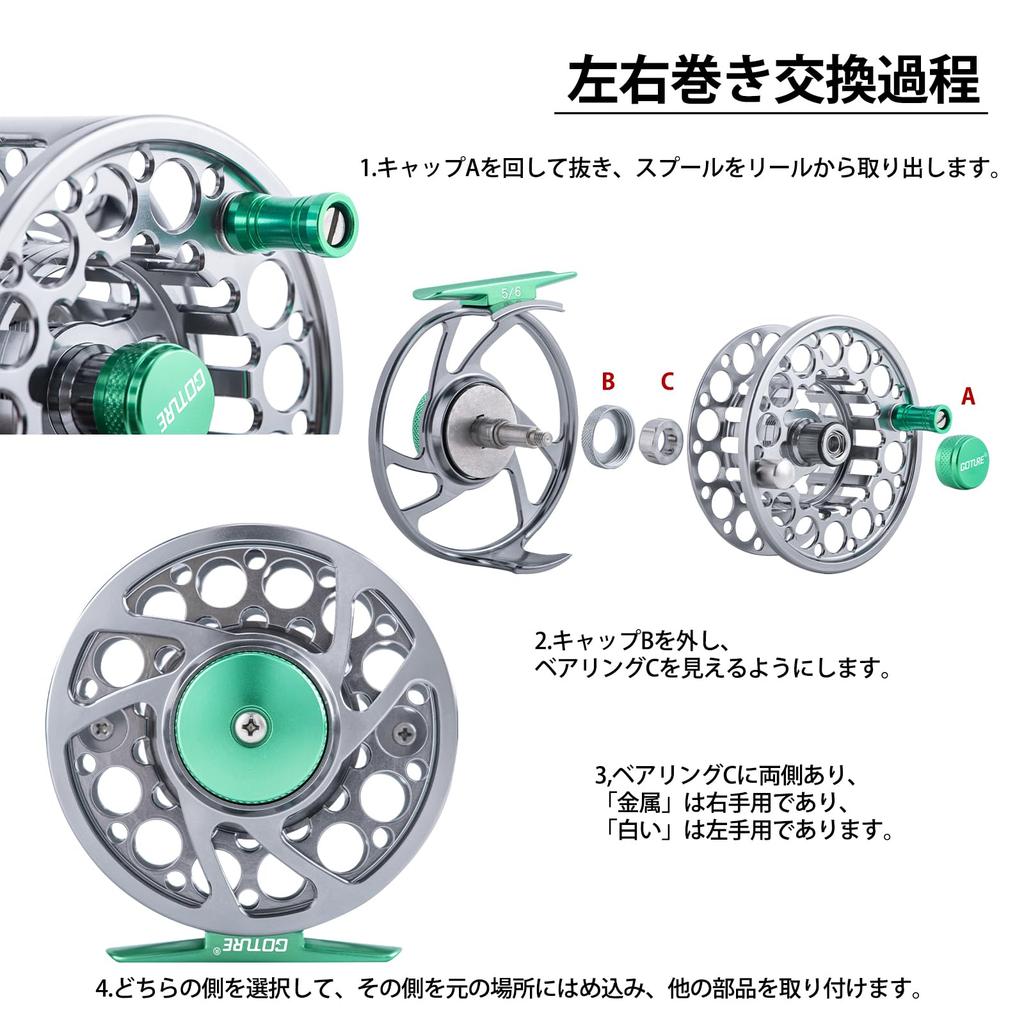 GOTURE Fly Fishing CNC Gunmetal Dark Light Green Main Line 4X Leader Line and Orange Extension Line 20LB Lightweight Reel, Machined, + Green, 5/6"