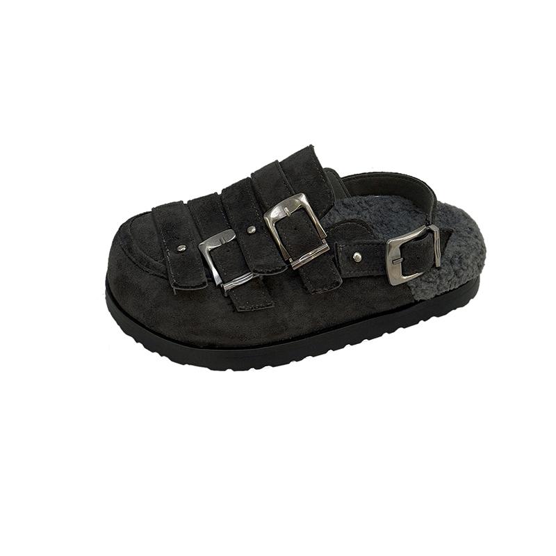Осень Новые туфли из овечьей шерсти с большой головой и металлической пряжкой Baotou на платформе, нескользящие, полузакрытые