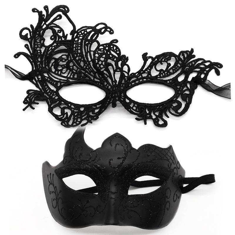 Набор из 2 элегантных черных кружевных маскарадных масок для пар. Идеально подходит для венецианской вечеринки, Марди Гра и празднования Хэллоуина.