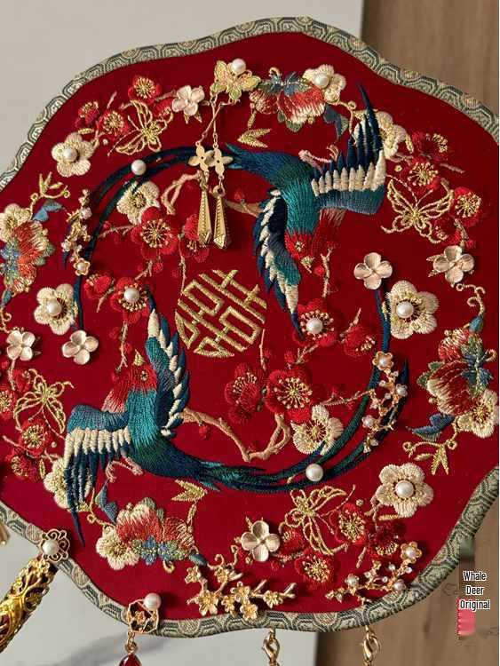 Двусторонний круглый веер "Кит и Олень" - Оригинальный дизайн "Сорока и Смеющаяся Голубка" для подарка невесте на свадьбу