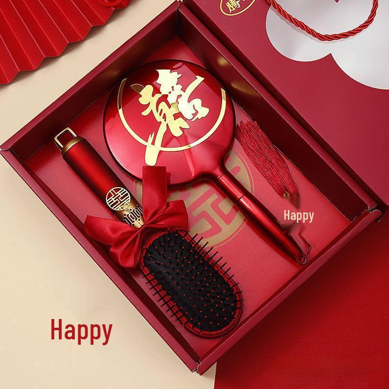 Приданое китайской невесты: Красный набор расчесок с воздушной подушкой - Пушистая воздушная подушка, Одна пара с подарочной коробкой для свадеб