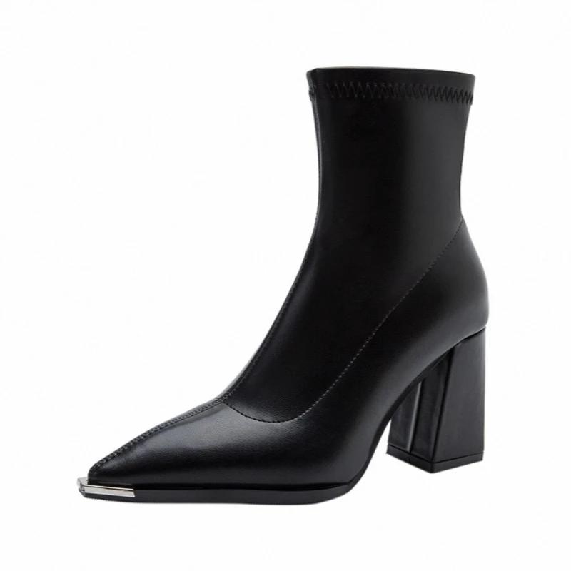 Женские универсальные ботильоны на толстом каблуке с кожаным верхом с острым носком, новый стиль, большой размер, высокие каблуки, осенне-зимняя мода