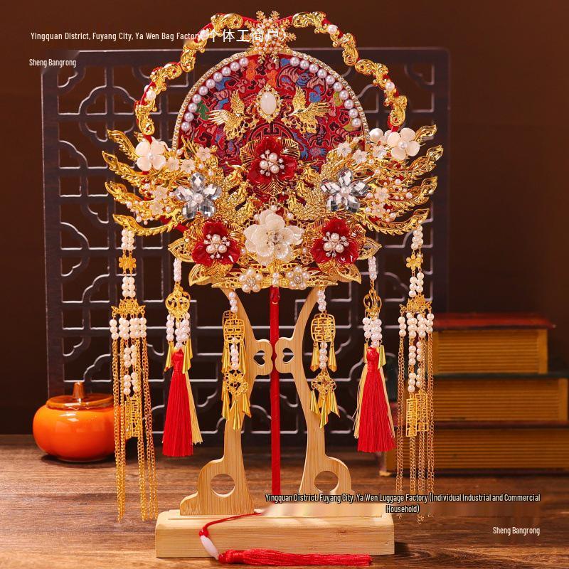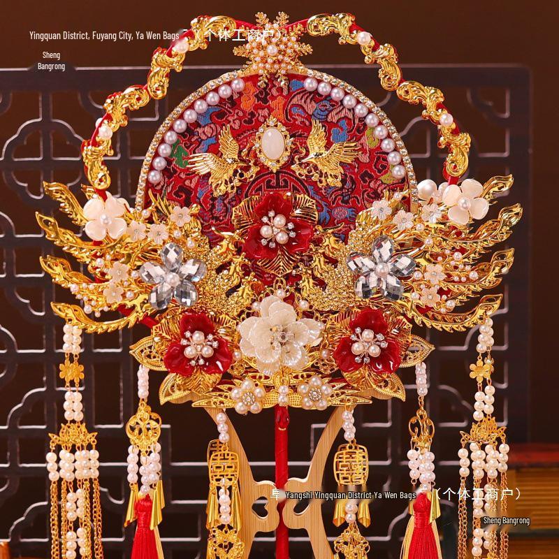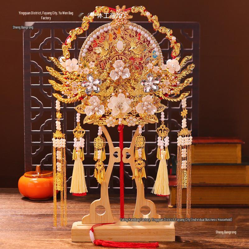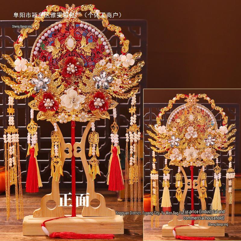 Двусторонний прочный свадебный ручной веер Сюхэ - Древний стиль, ручная работа, круглый, для прикрывания лица невесты