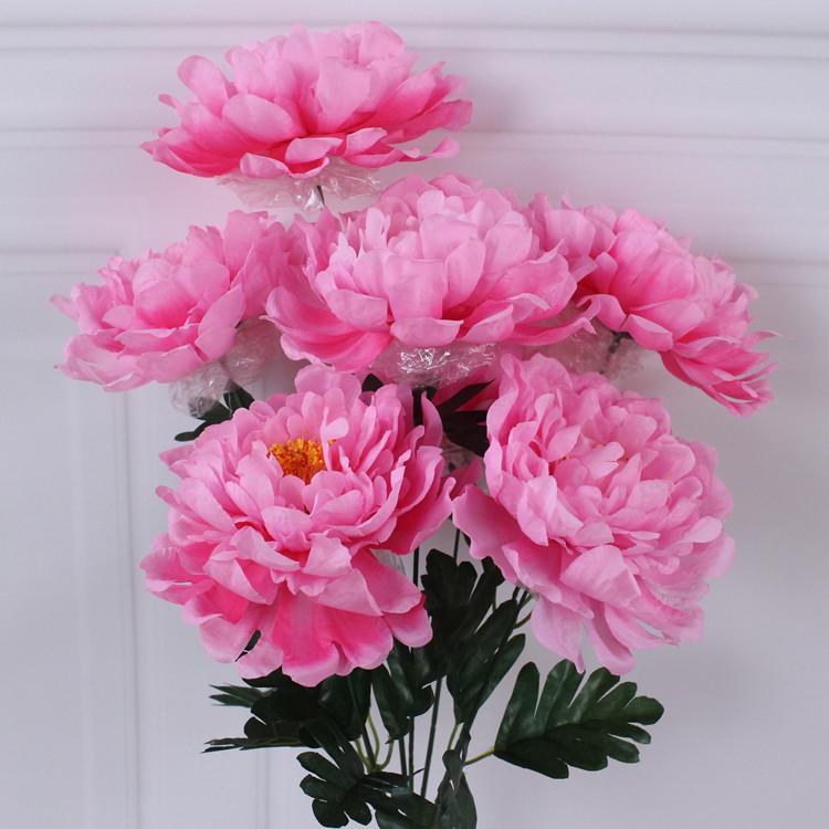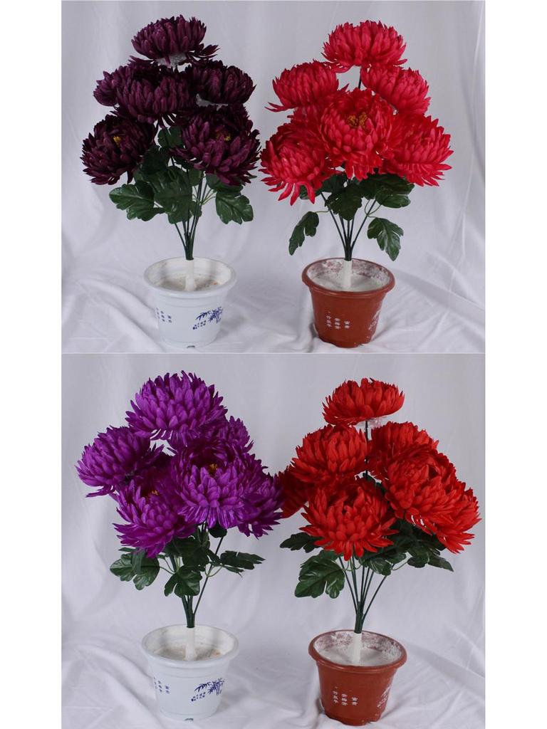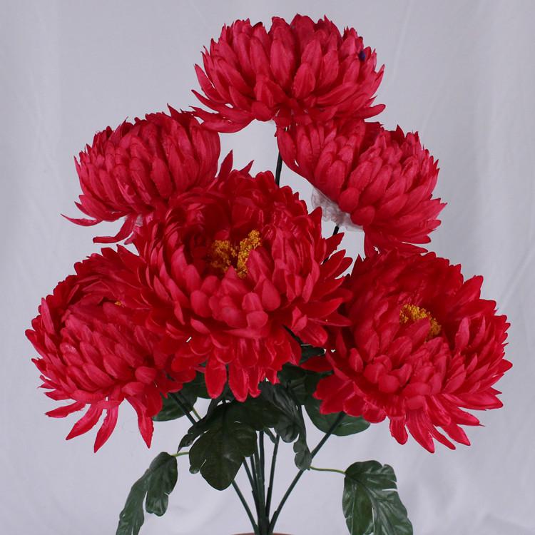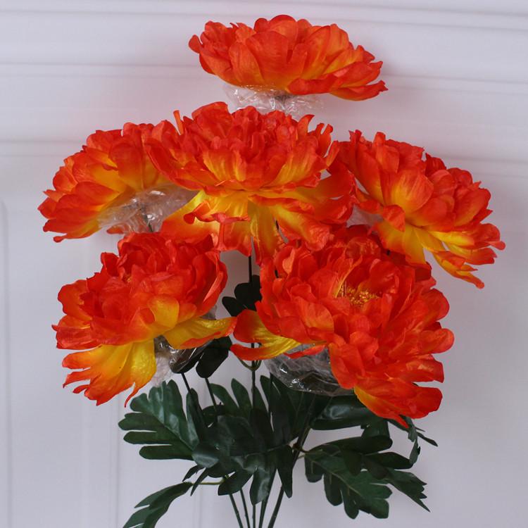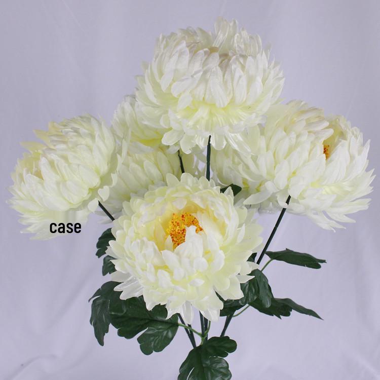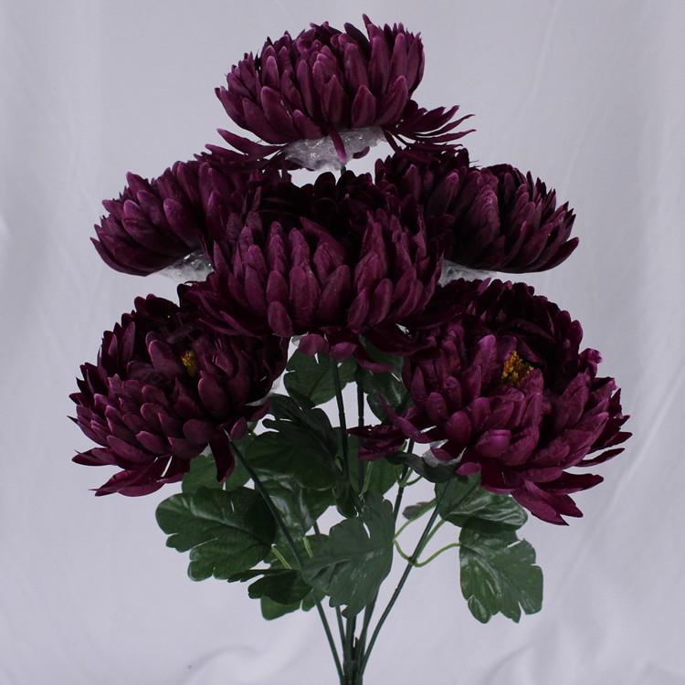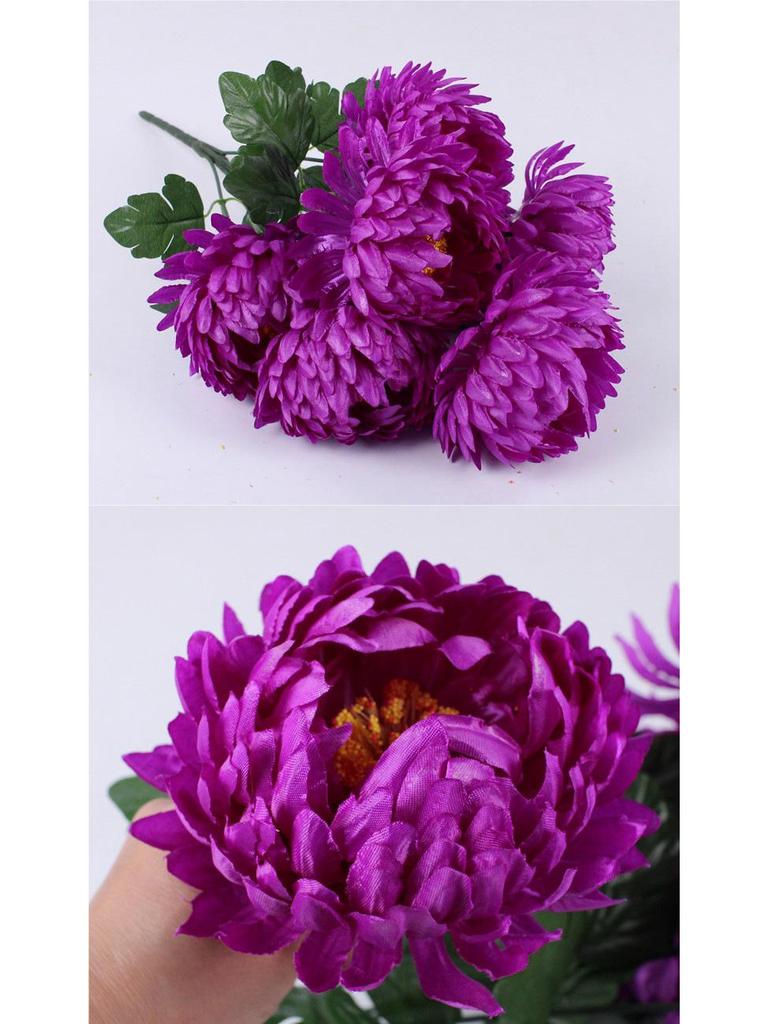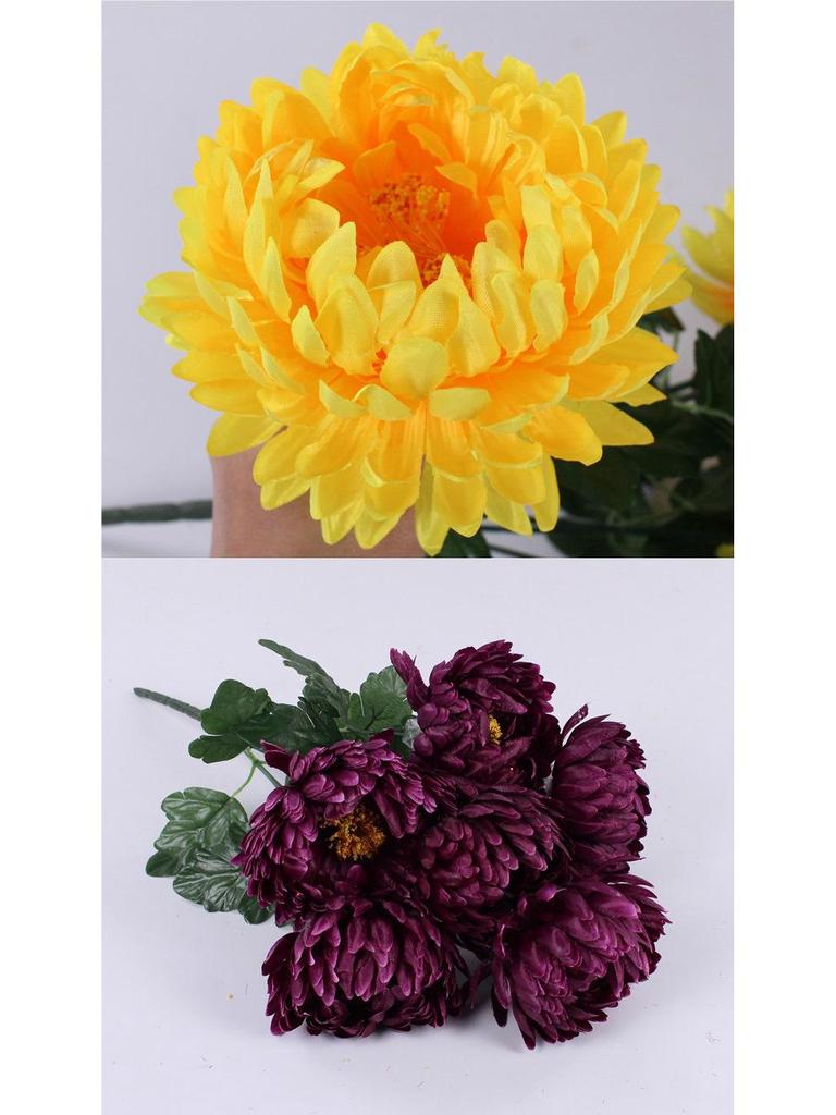 Искусственный шелковый цветок хризантемы с 7 головками для мемориального и кладбищенского оформления во время Дня поминовения усопших.