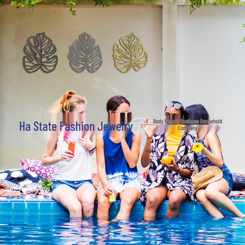 Винтажная деревянная подвесная табличка в виде пальмового листа для тропического декора стен в ванной комнате или гостиной