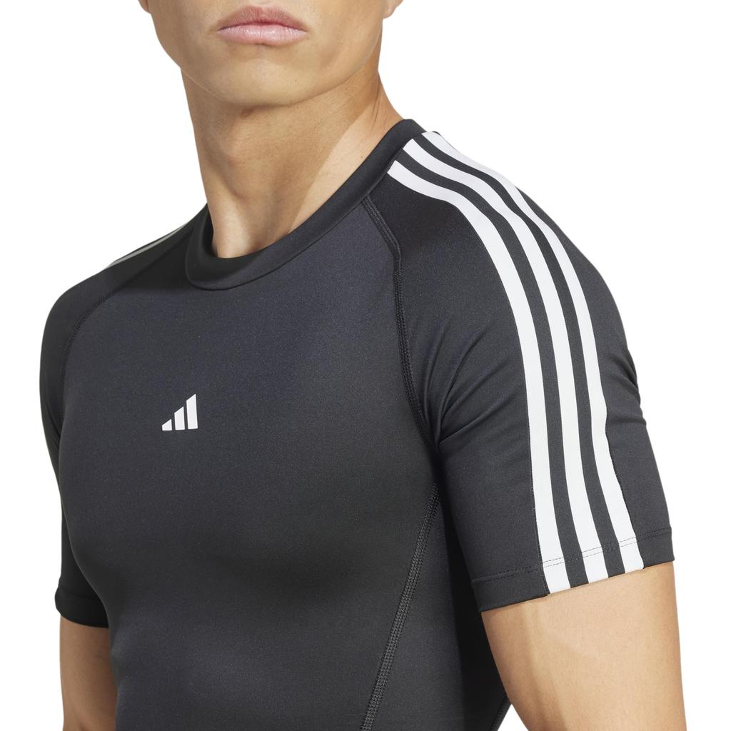 Компрессионная футболка с коротким рукавом Adidas JTE78 TechFit для тренировок, черная, мужская, размер 3-Stripes, (IN5588), Дж/Л