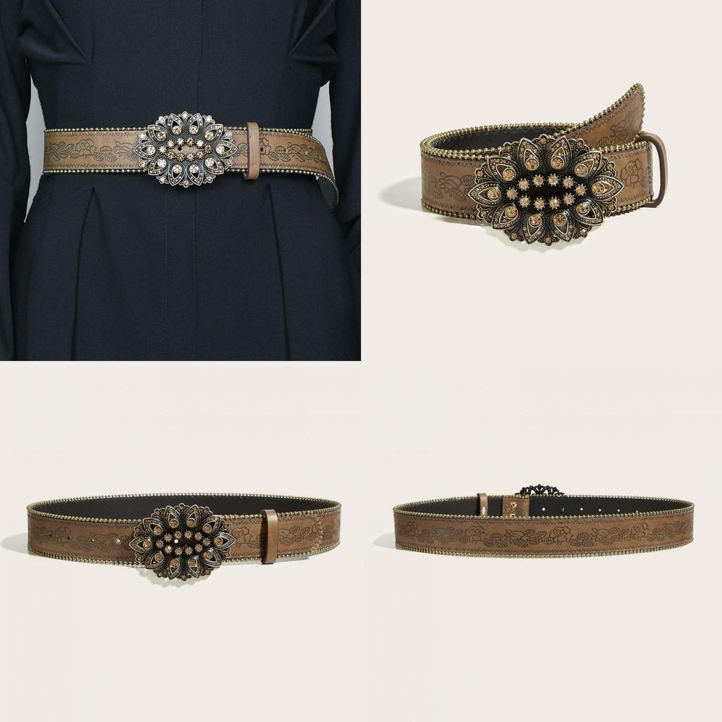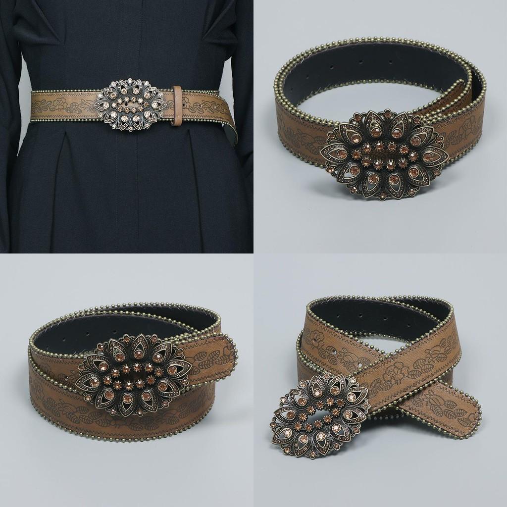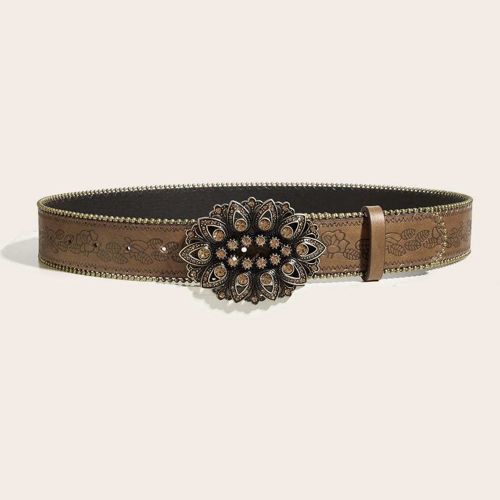 Стиль Лепесток Ретро Кожаный Поясной Ремень Сплавная Пряжка Уличная Одежда Украшение Внешний вид