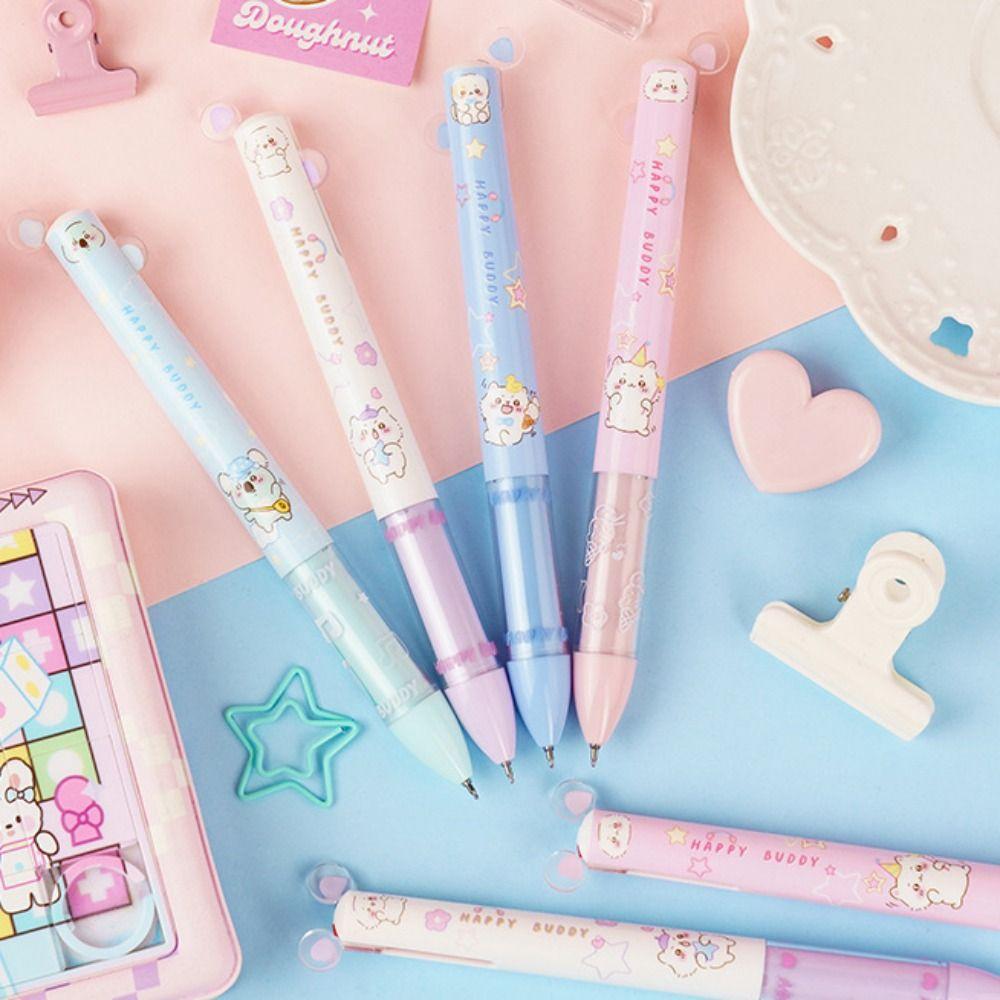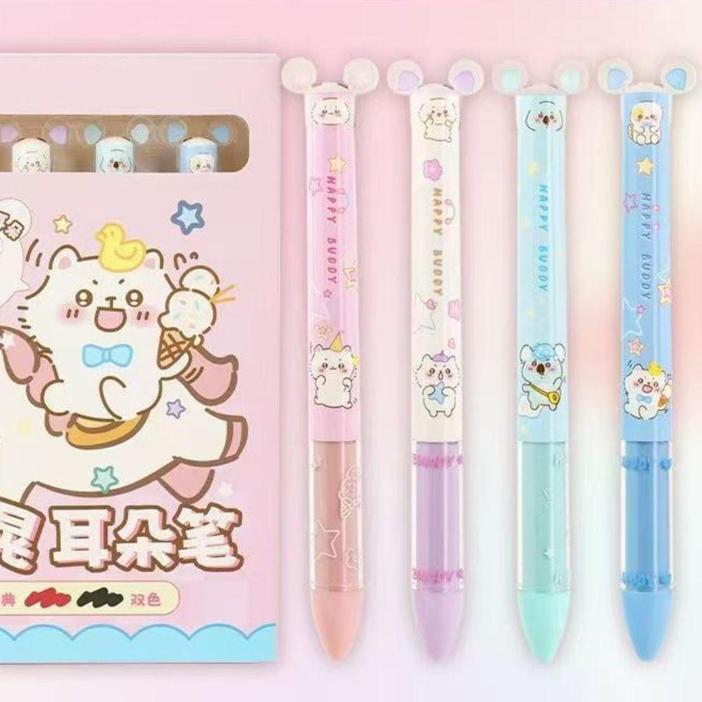 4 pcs Mini Ear Dual Color Ballpoint Pen ABS Two-color Gel Pen Funny Student Writing Pen School Home