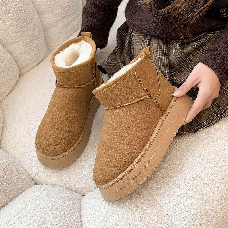 Женские зимние ботинки на толстой подошве, верхняя одежда 2025 зима, новые короткие ботинки из цельного меха, утолщенные хлопковые туфли, нескользящая теплая обувь