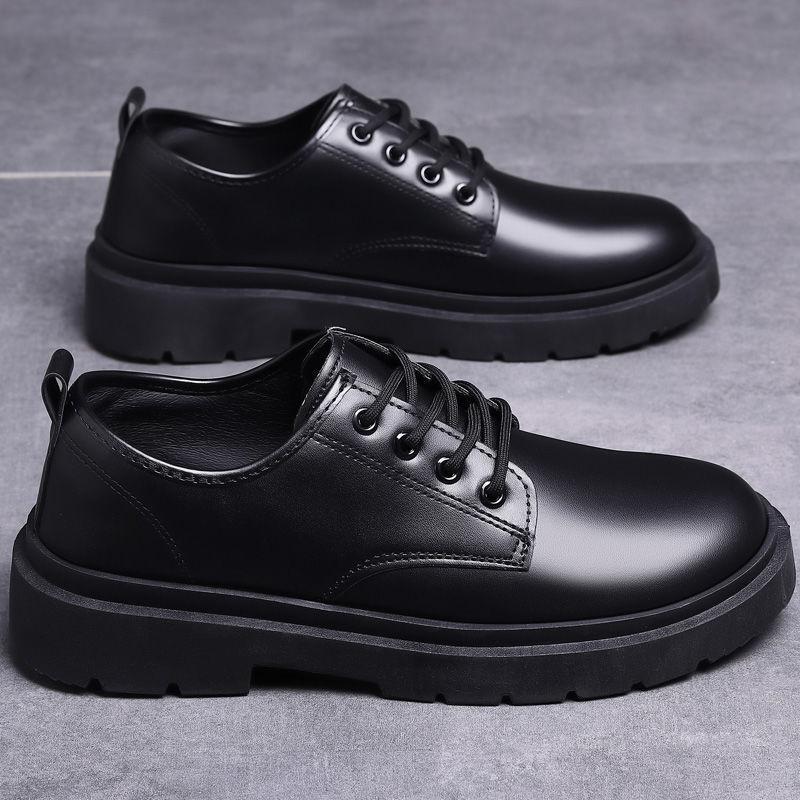 Мужская обувь 2025 новая осень британский стиль черные повседневные кожаные туфли мужские деловые туфли с большой головой рабочие ботинки Мартин