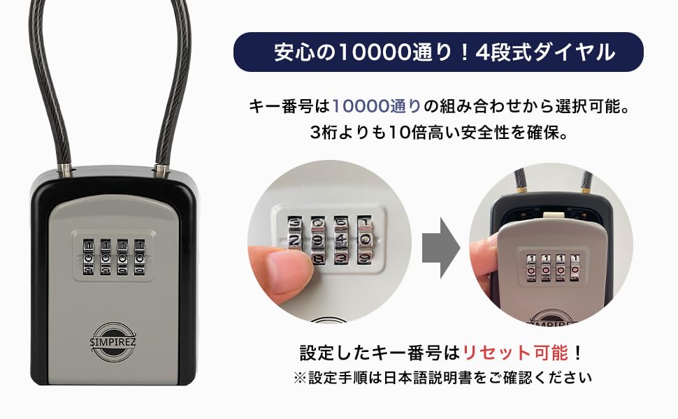 ▶ Безопасность и удобство ключевых ящиков Наши ключевые ящики оснащены высокозащищенным четырехступенчатым диском с 10 000 программируемых настроек. Этот четырехзначный кодовый замок в 10 раз надежнее трехзначного, а легко запоминающаяся четырехзначная комбинация позволяет легко его сбросить.. Кроме того, нет необходимости в ключе или другом инструменте доступа, поэтому вам не придется беспокоиться о его потере и невозможности открыть его.. Кроме того, конструкция внутреннего хранения скрывает содержимое от посторонних глаз, что делает его безопасным для использования на открытом воздухе.. Ключница SIMPIREZ — отличный продукт, сочетающий в себе безопасность и удобство.