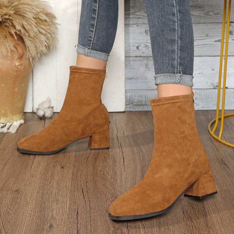 Ботильоны скинни больших размеров, модные, с квадратным носком, из замши, на задней молнии, на мягкой подошве, нескользящие, на блочном каблуке — купить товар онлайн с бесплатной доставкой по всему миру!