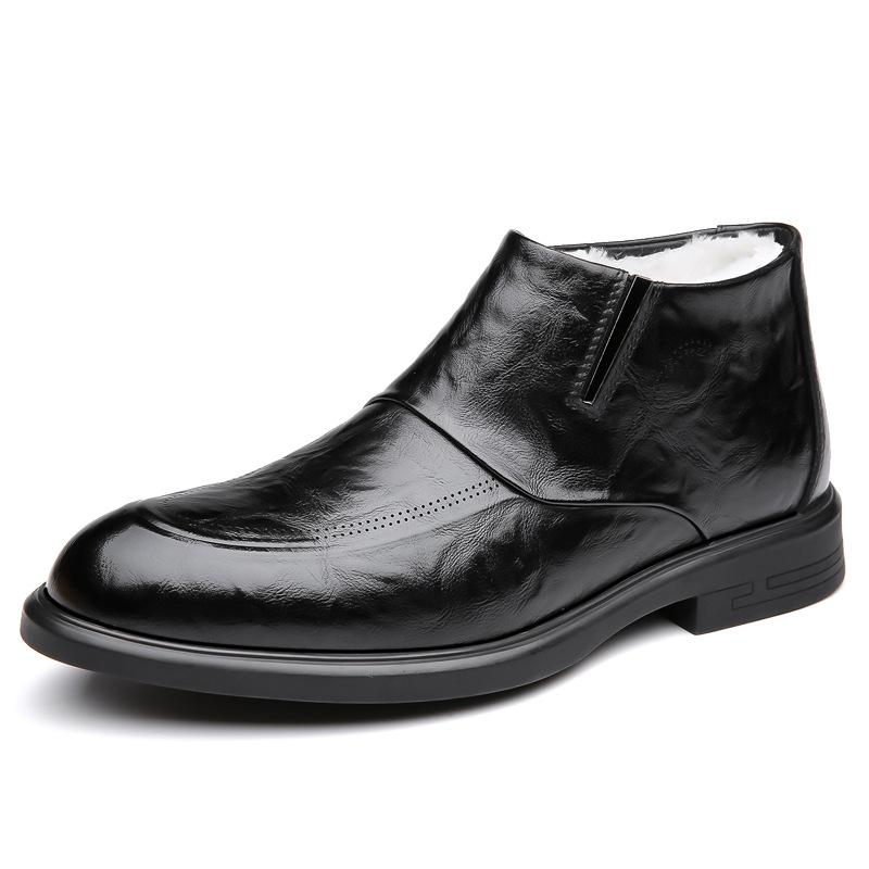 Деловые формальные хлопковые кожаные туфли для мужчин на зиму, утепленные, в деловом повседневном стиле, мужские высокие туфли