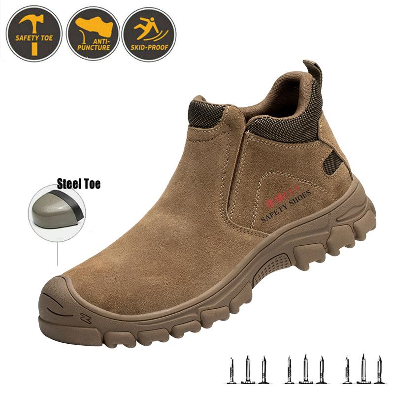 Мужская уличная рабочая обувь безопасности Ботинки со стальным подноском Ударопрочные рабочие ботинки Всесезонная повседневная обувь для пеших прогулок для работы на эксплуатационной площадке