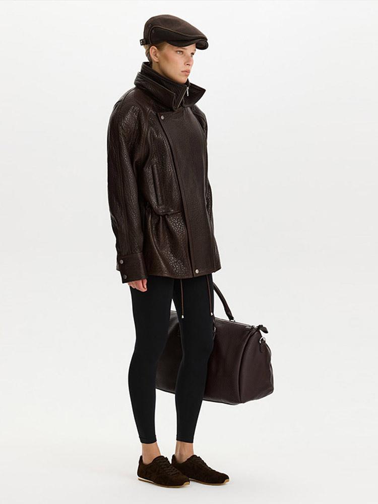 Женская кожаная куртка с лацканами, приталенная по талии, Женская коричневая кожаная куртка на молнии, Ветрозащитная куртка, Модный стиль, Осень и зима