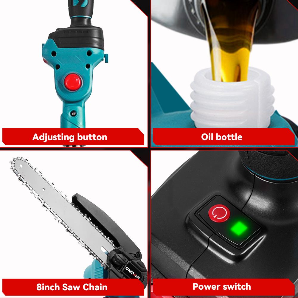 -Перезаряжаемая электрическая цепная пила, легкая и портативная, длительное время автономной работы, не повредит кору.