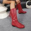 Обувь для женщин Весенние сапоги до колена Красные Черные Белые Высокие сапоги Женские Плиссированные Низкие Каблуки Повседневные Кожаные Женские Длинные Туфли