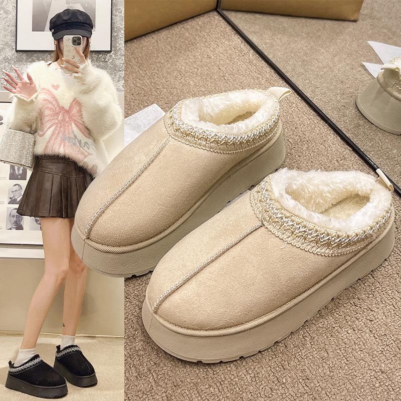 Женские зимние модные тапочки Baotou на толстой подошве из губчатого пирога, теплые хлопковые ботинки для женщин