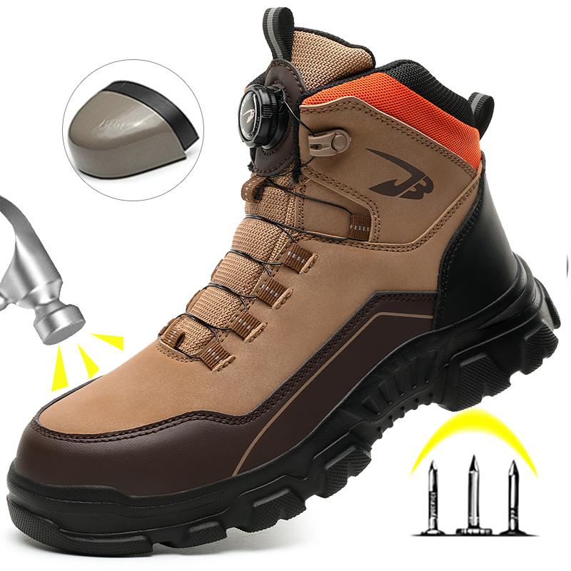 Новые высокие ботинки безопасности с вращающейся кнопкой для мужчин, неубиваемые рабочие ботинки, защитные ботинки с защитой от проколов, рабочие ботинки со стальным подноском