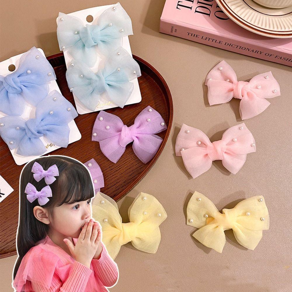 2 шт./набор заколки-банты для волос с искусственным жемчугом, многоцветные головные уборы, новые боковые заколки