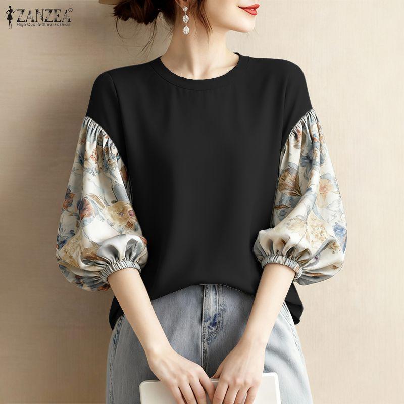 ZANZEA Женская блузка с принтом, рукавом 3/4, свободного кроя, с круглым вырезом, в стиле кэжуал