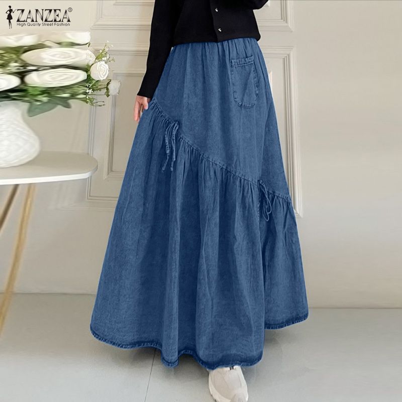 ZANZEA Женские свободные повседневные однотонные длинные юбки