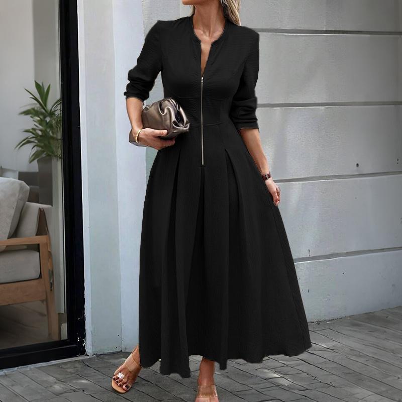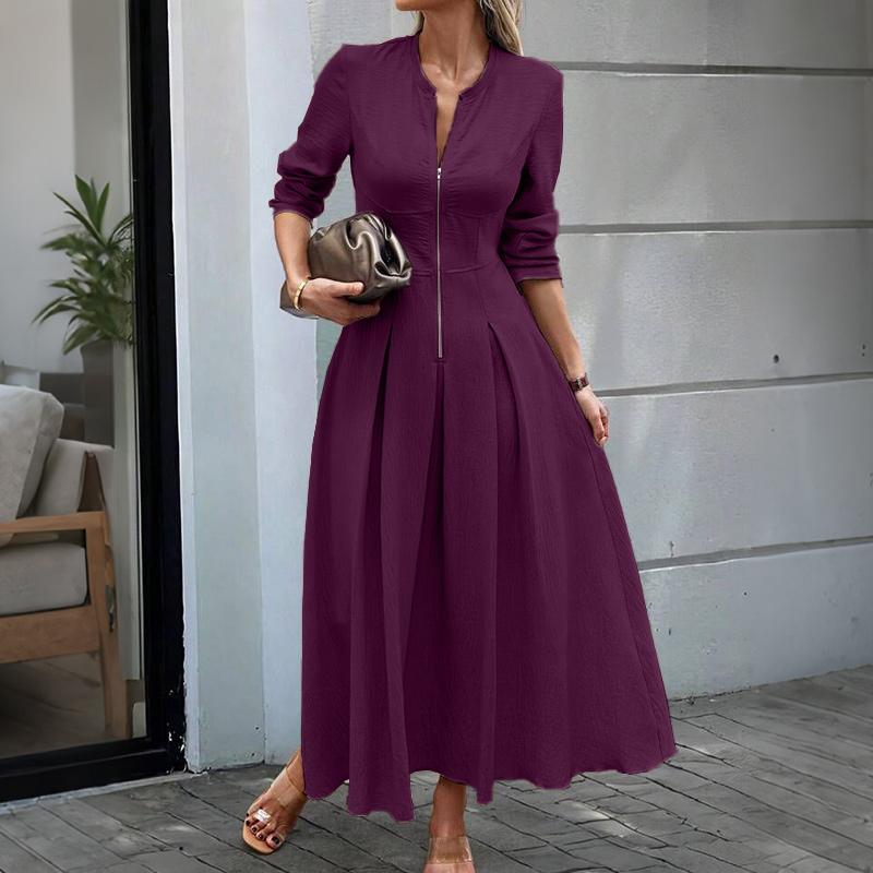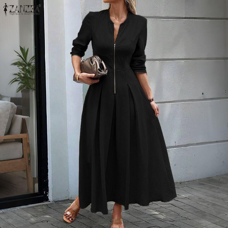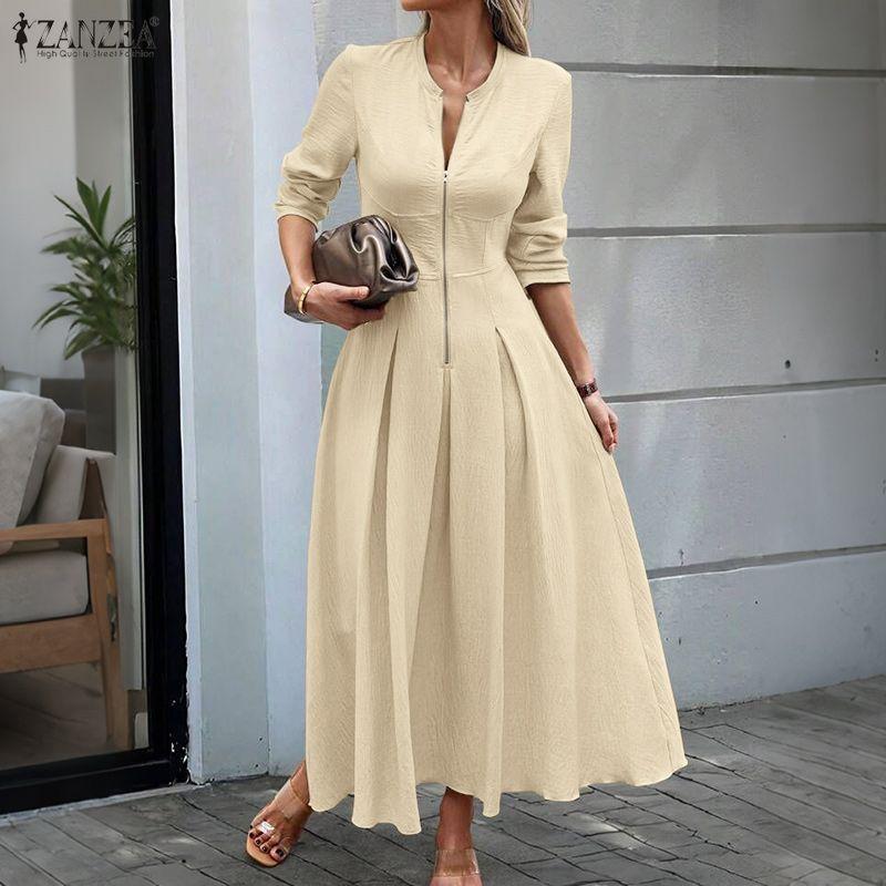 ZANZEA Женское повседневное платье А-силуэта с длинным рукавом и круглым вырезом, на молнии