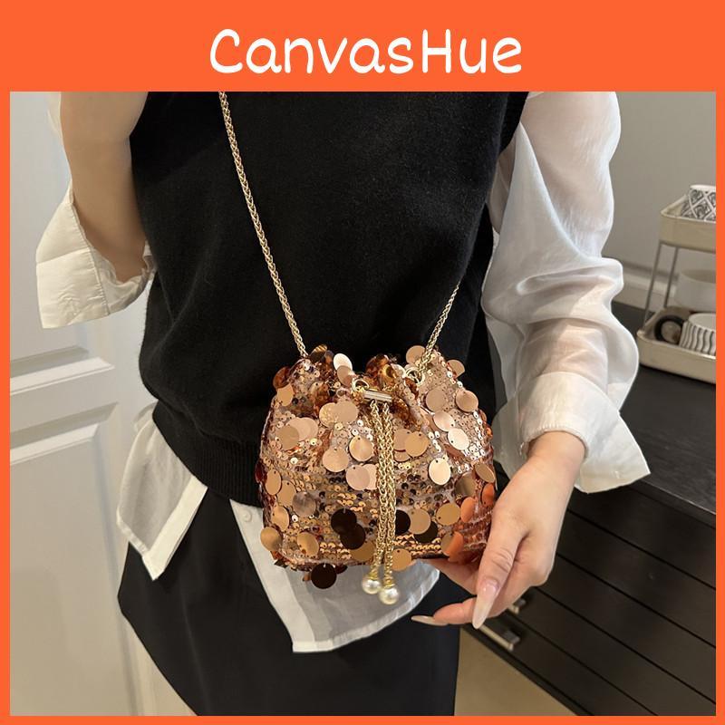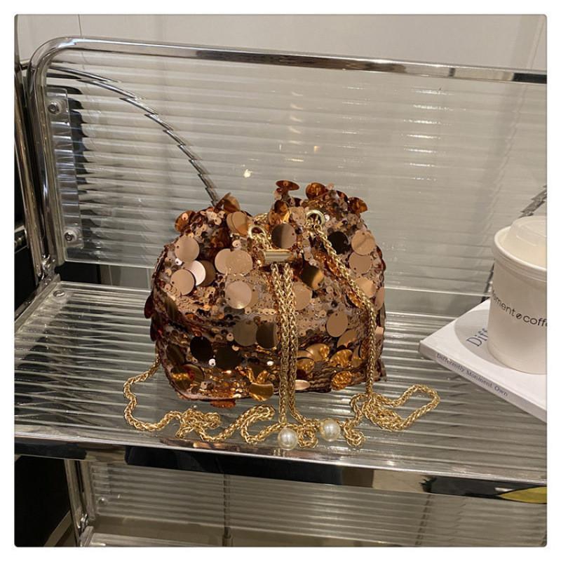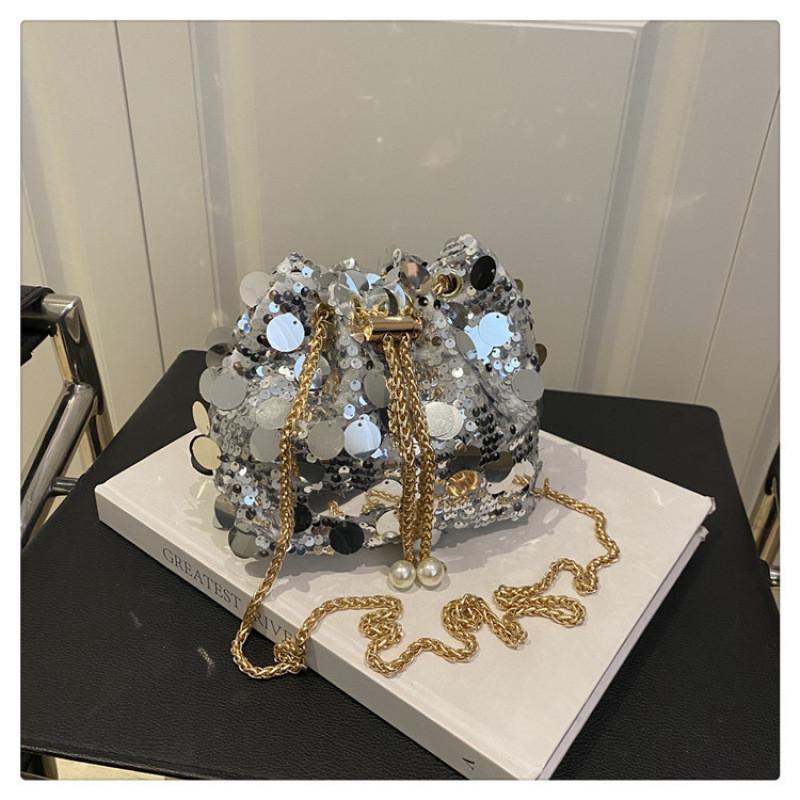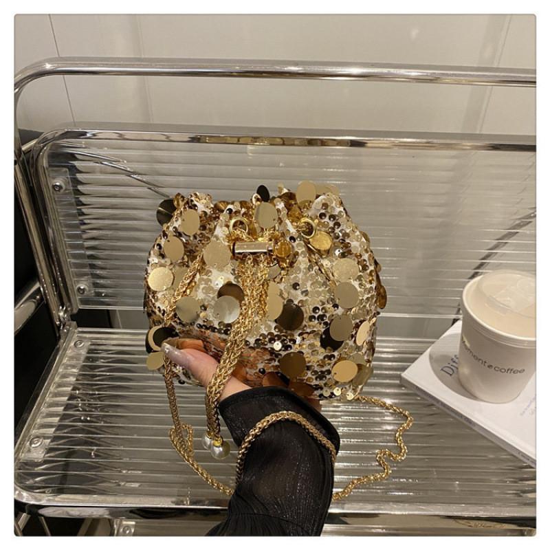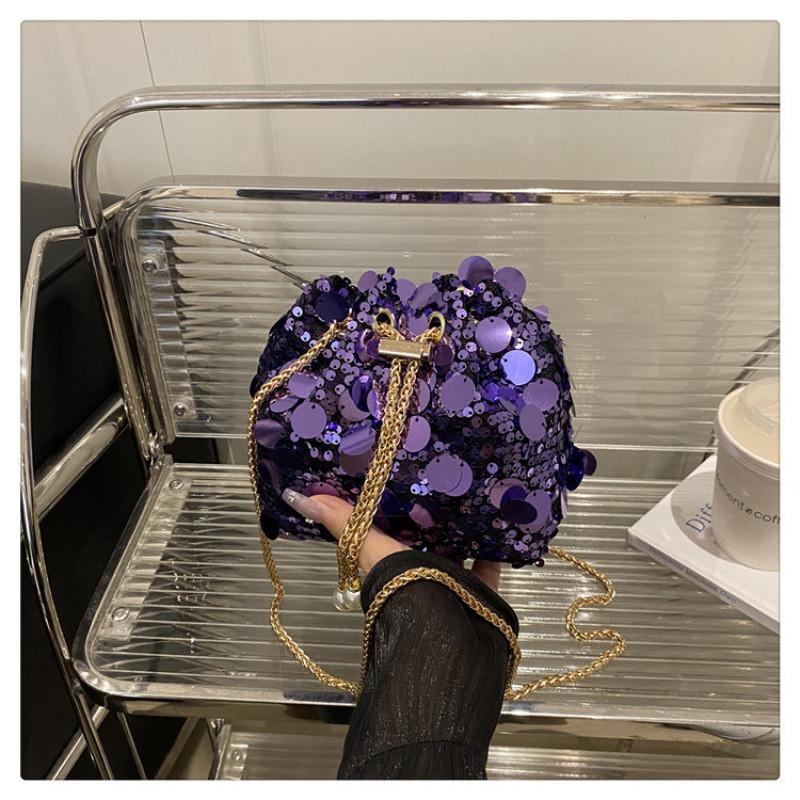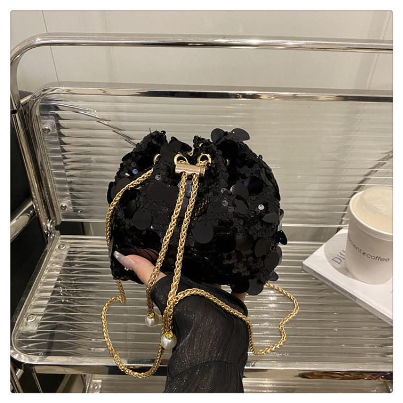 Дизайн Мода Блестки Женская Одноплечевая Цепочка Сумка-Ведро Кисточка С