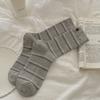 Женские весенне-осенние хлопковые полосатые преппи носки-гольфы без косточек с микродавлением на пуговицах и защитой от пиллинга