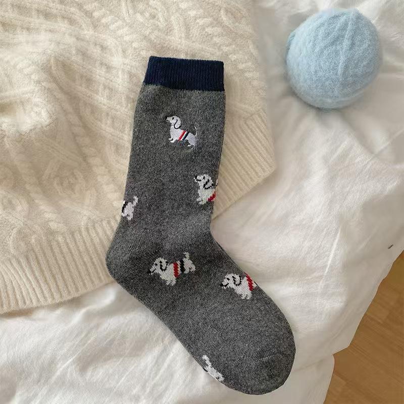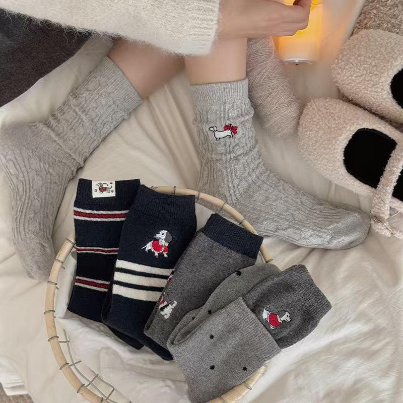 Женские осенне-зимние теплые ретро трендовые носки средней длины из шерсти с узором в полоску, горошек, двойной ротис, твист, махровые