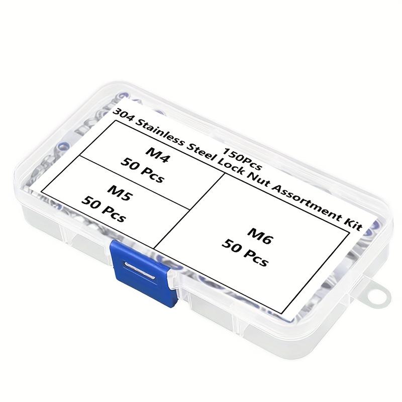 150 шт. Нержавеющая сталь Нейлон Самоконтрящиеся гайки с защитой от скольжения - M4/M5/M6, Шестигранные колпачки для болтов для строительства, обслуживания