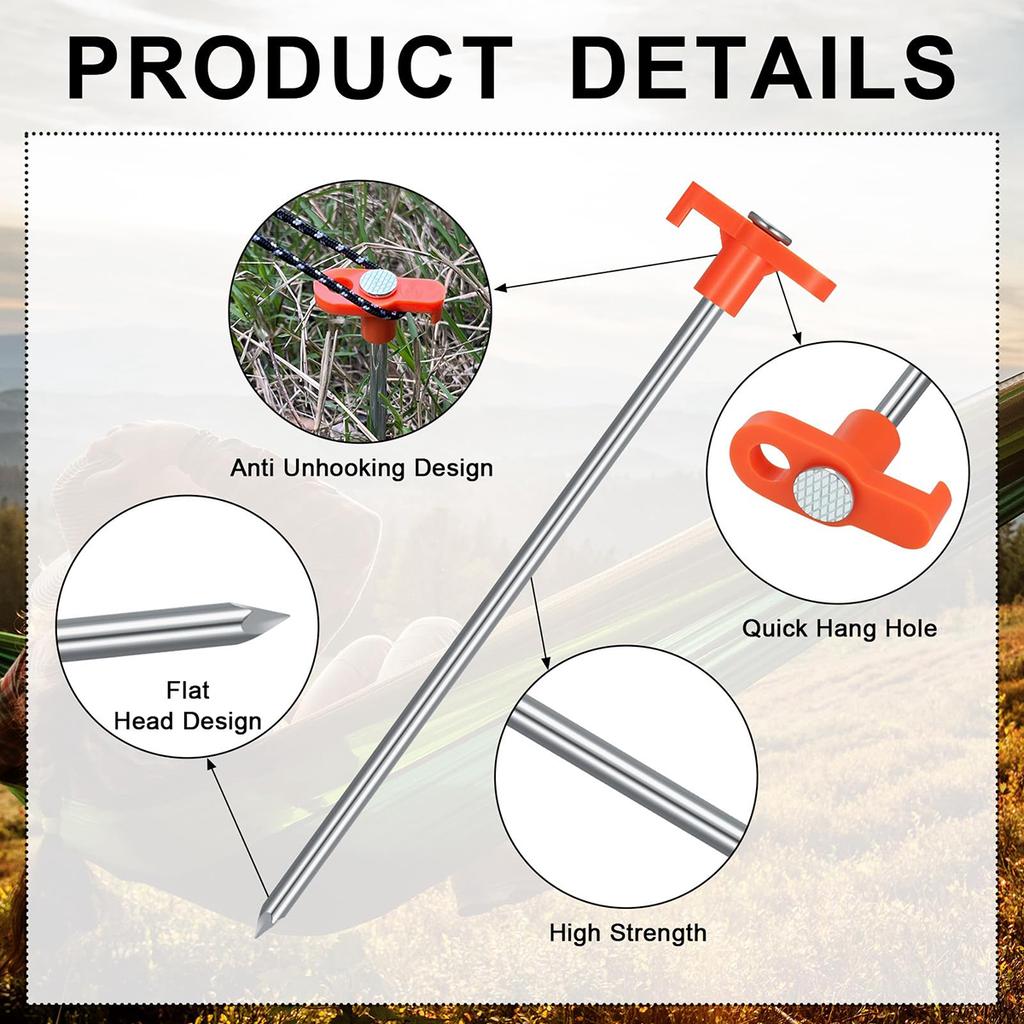 10 Pack Tent Ground Pegs Heavy Duty Metal Tent Stakes for Hard Ground Camping Awnings