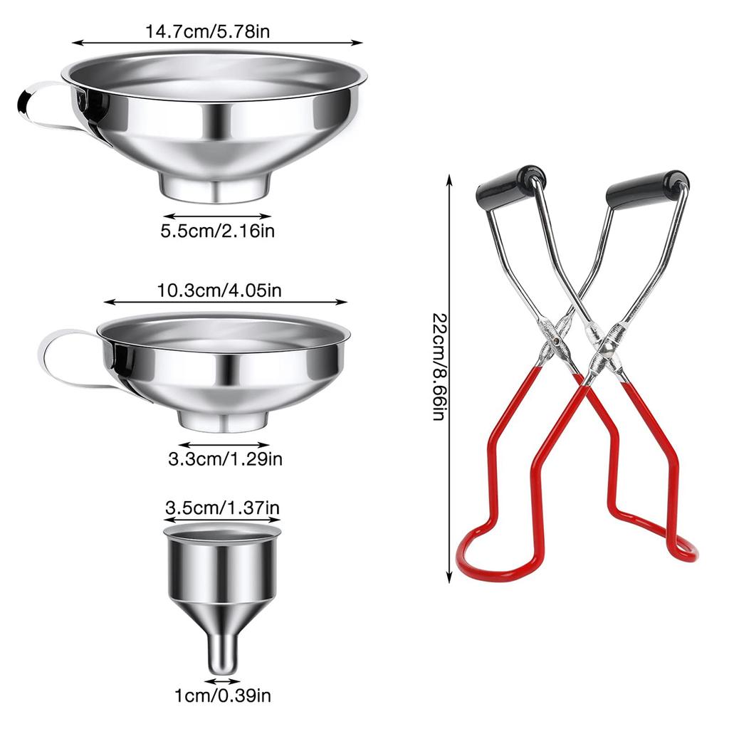Набор из 4 предметов из нержавеющей стали: воронка для варенья с ручкой, наполнительная воронка и воронка для подъема стекла