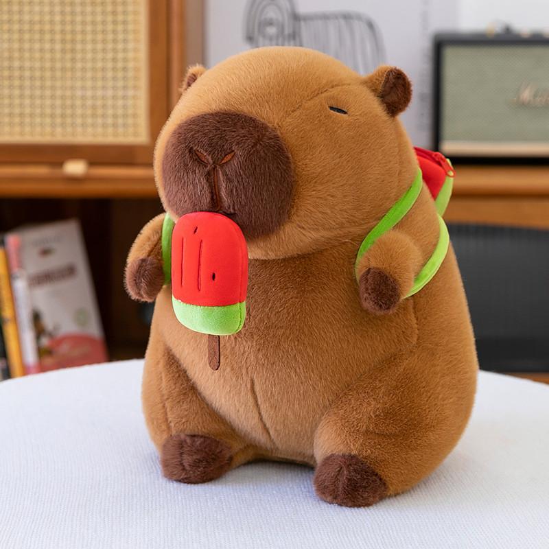 Watermelon Cream Ice Capybara Plush Toy With Transparent Backpack Doll Animal