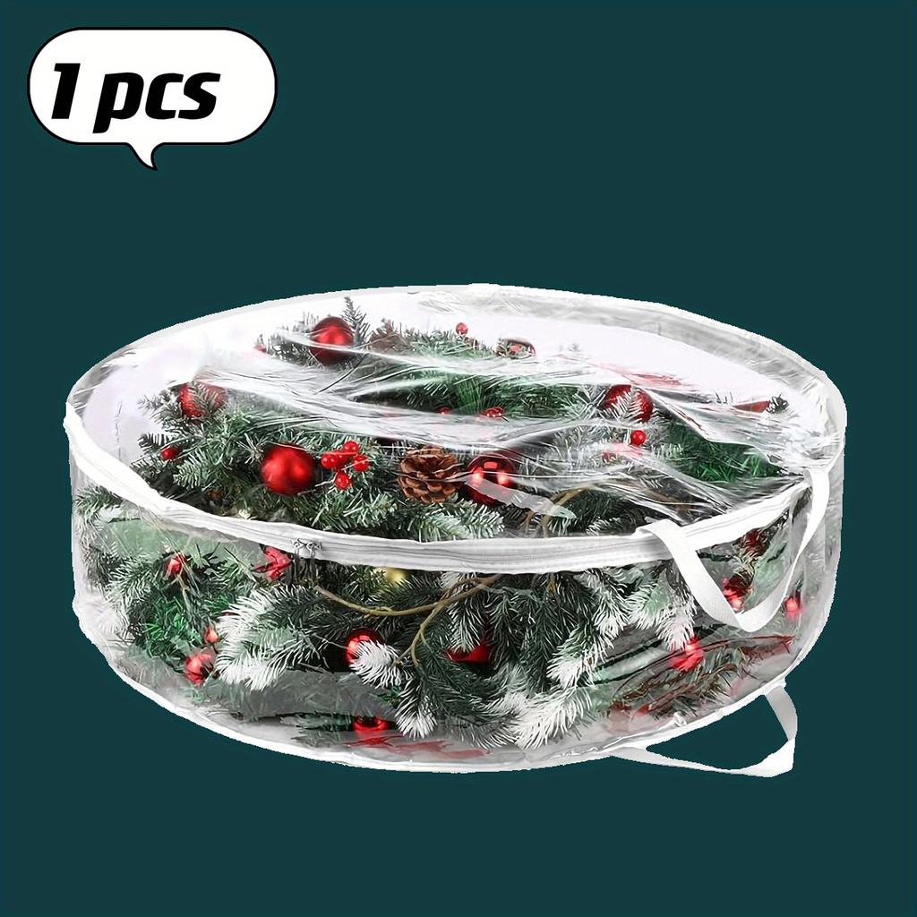 Сумка для хранения рождественского венка Прозрачный контейнер для рождественского венка Держатель для искусственного венка Водонепроницаемый прозрачный ПВХ с прочными ручками