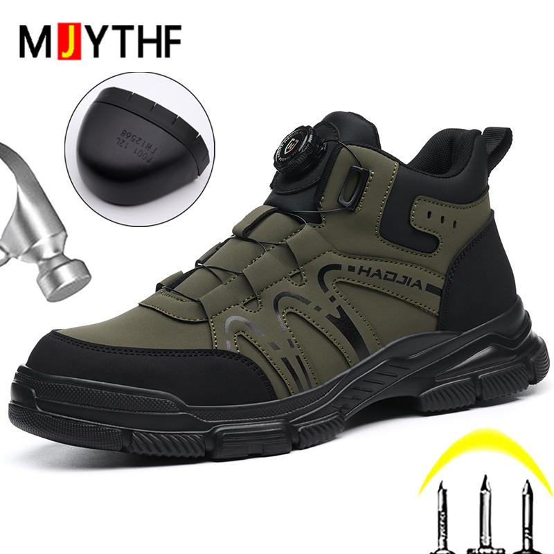 Rotating button Steel toe shoes Work Boots Safety Shoes Men Puncture-Proof Protection Shoes Security Sneakers Men lightweight