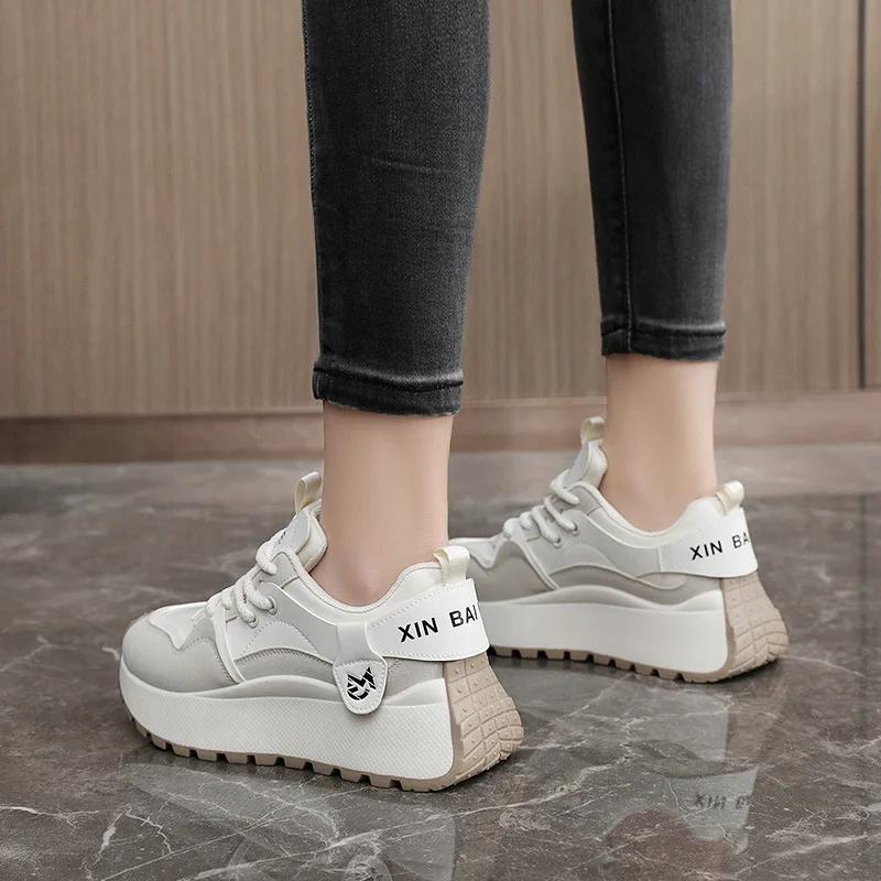 Fashion Platform Sneakers for Women Spring Thick Bottom Vulcanized Shoes Woman Lace Up Casual Wear-resistant Running Shoe
